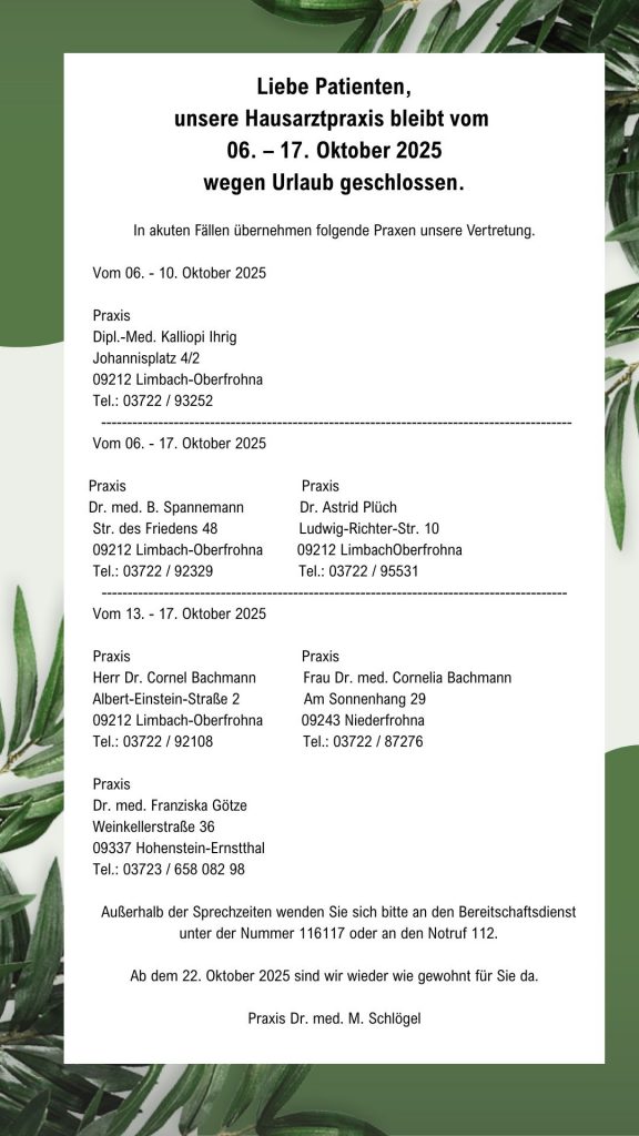 Patienten, die eine längere Beratung aufgrund ihrer Erkrankung oder Beschwerden brauchen, bitte ich dies bei der Terminvergabe mit anzugeben, damit ein entspechendes, längeres Zeitfenster eingeplant werden kann.